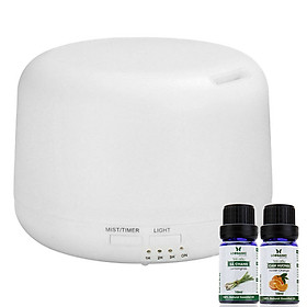 Máy khuếch tán tinh dầu hình trụ trắng 300ml + tinh dầu sả chanh (10ml) + tinh dầu cam Lorganic (10ml)