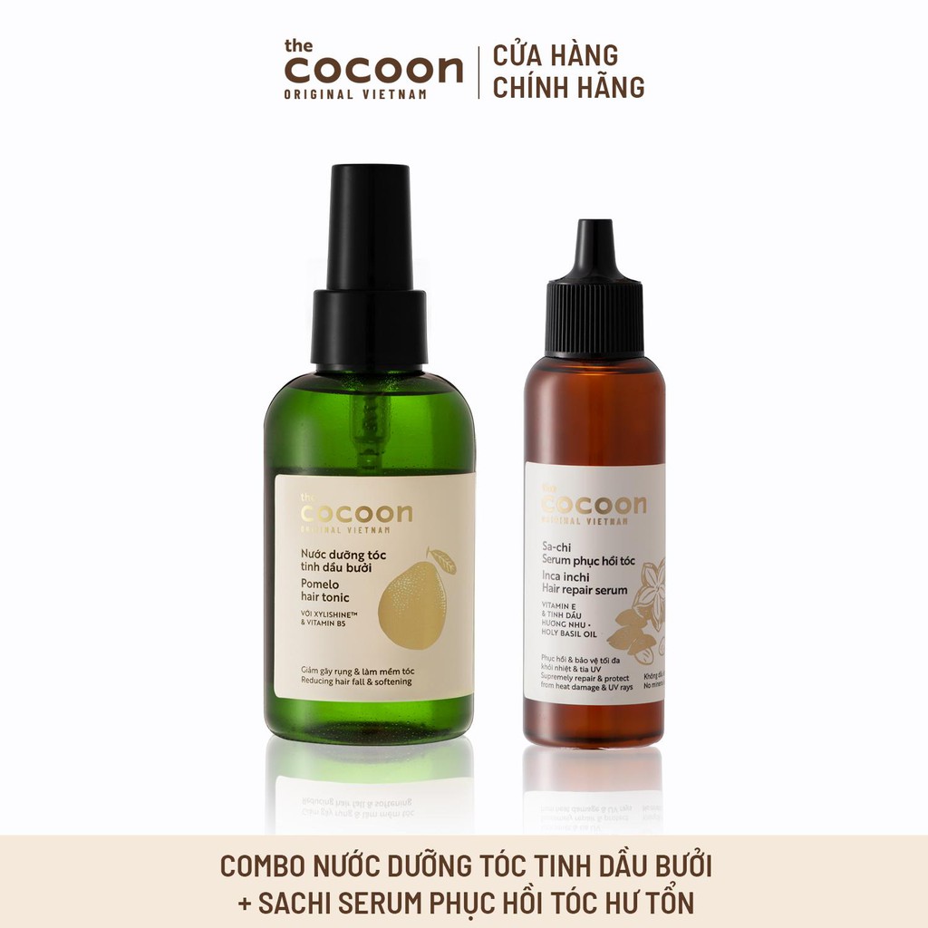 Combo Nước dưỡng tóc tinh dầu bưởi Cocoon 140ml + Sa-chi Serum phục hồi tóc Cocoon 70ml