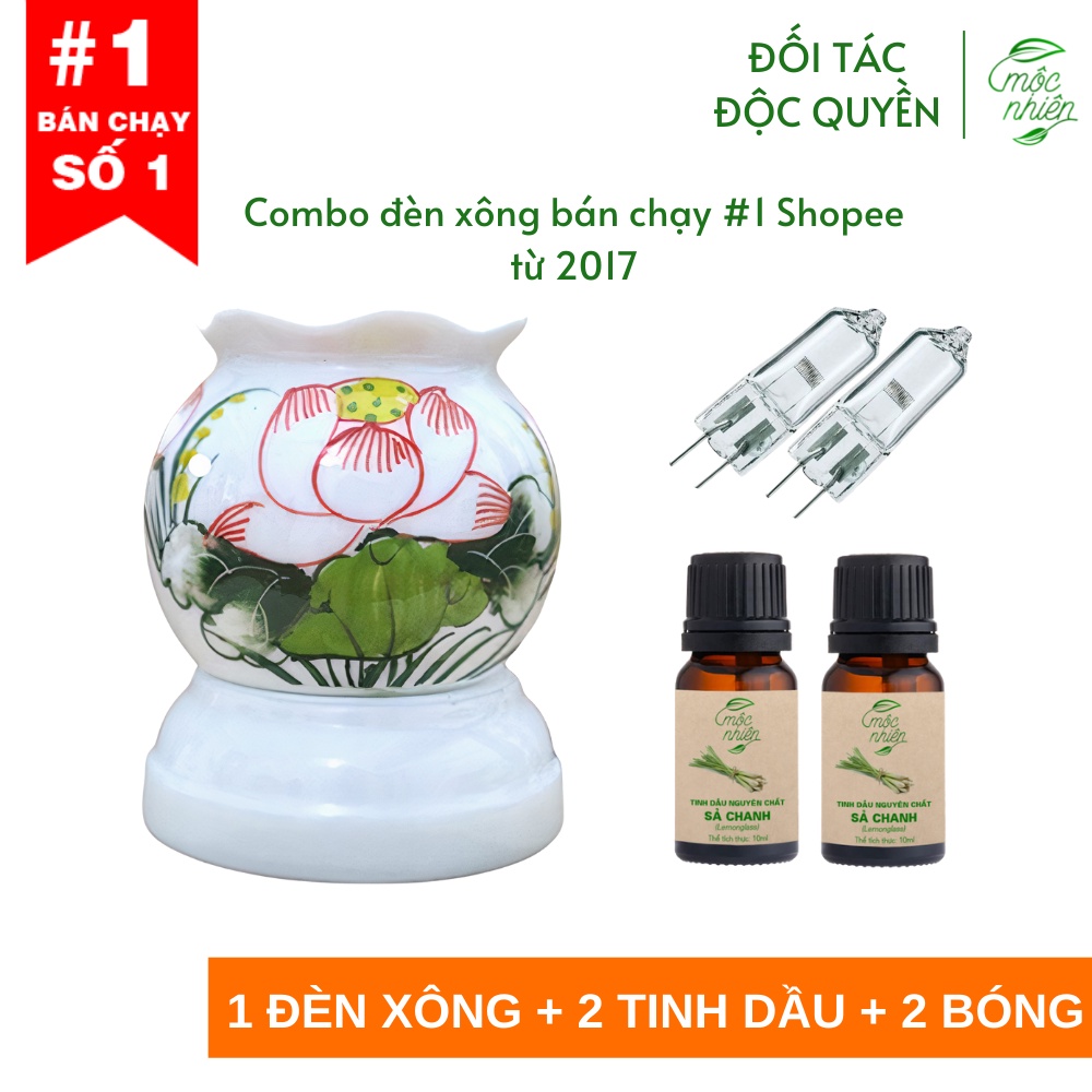 Combo 1 đèn xông tinh dầu + 2 tinh dầu 10ml Mộc Nhiên (có kiểm định) + 1 bóng đèn dự phòng free ship