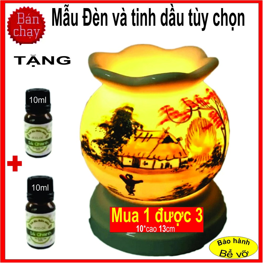 Đèn xông tinh dầu bát tràng +Tặng 02 chai tinh dầu 10ml (size trung) (11x Cao 13cm) free ship